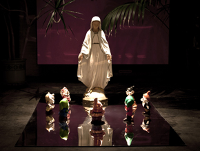 | Terrorist Fashion, 1996, Inkjet prints | Snow White, 2014, Installation | Unidentified Crib, 1994, Gold and iron |
